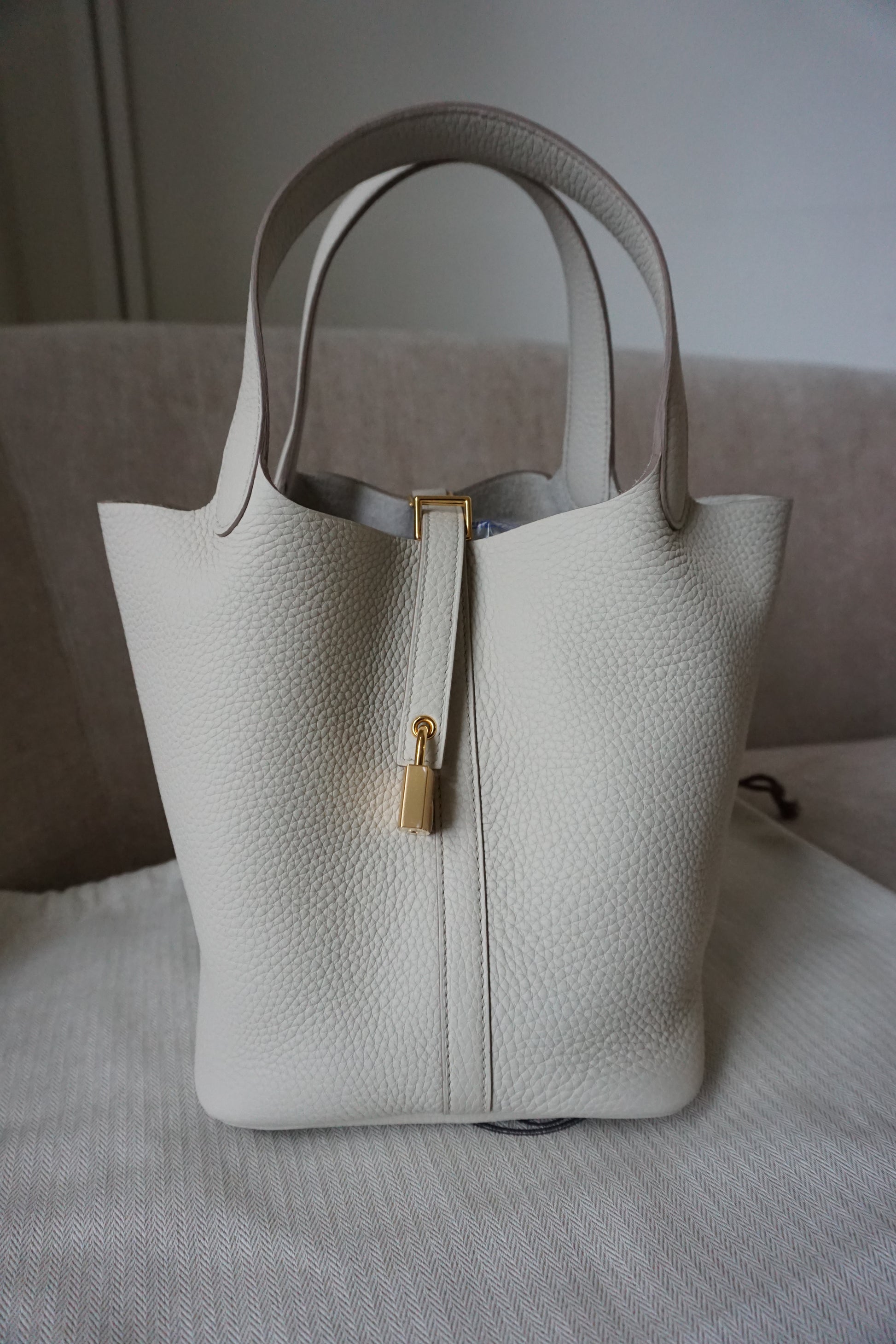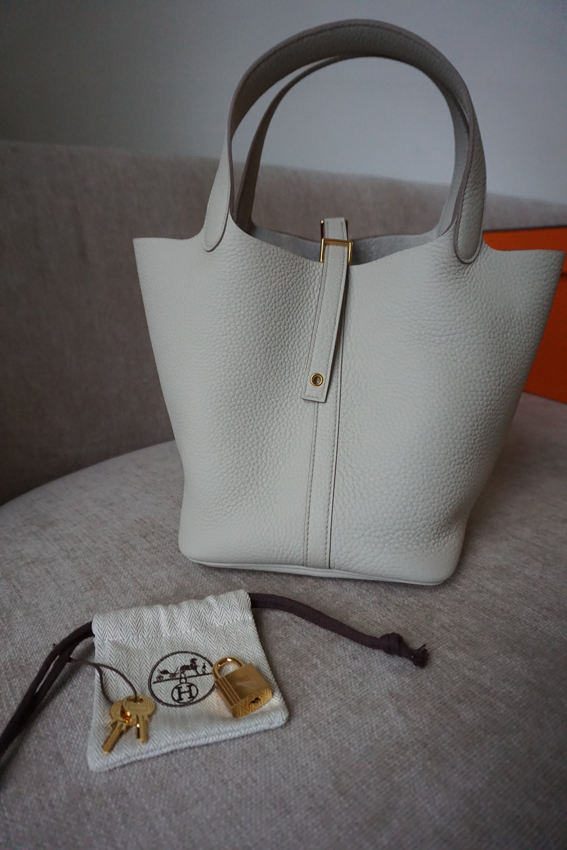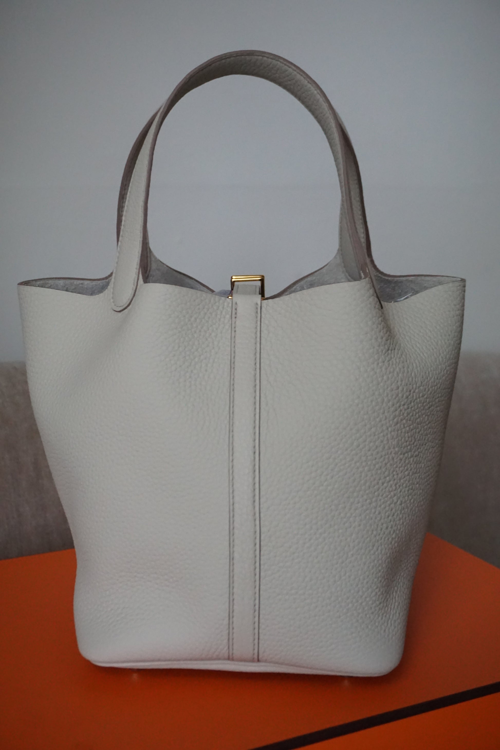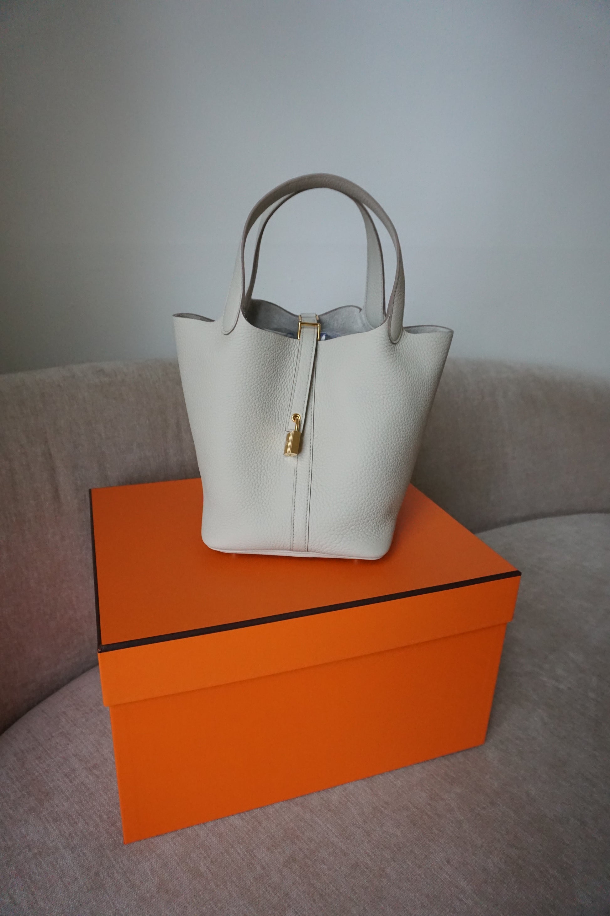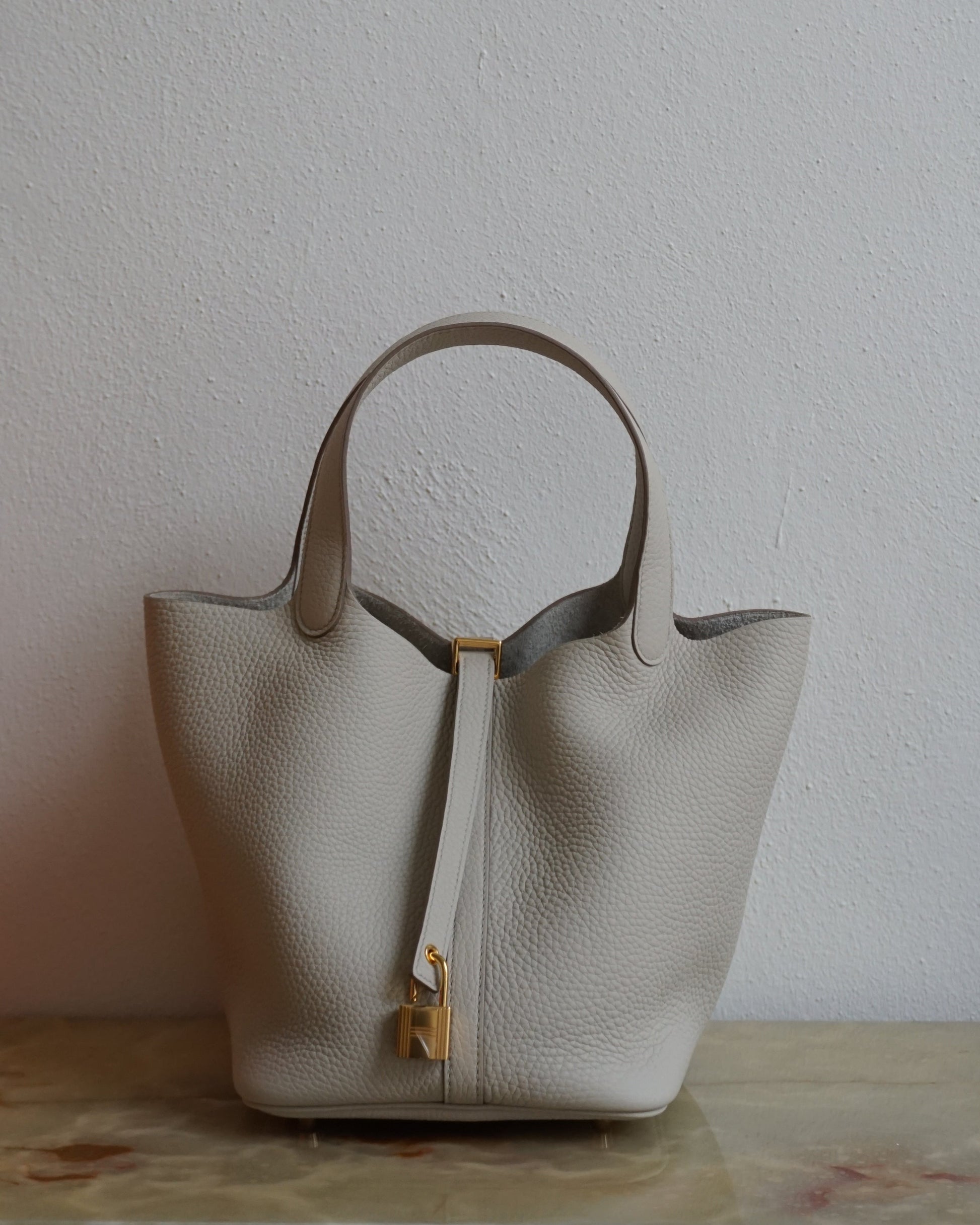 Brand New In Box Hermès Picotin 22 in Beton Clemence with Gold Hardware. Comes with a full set, including the receipt.